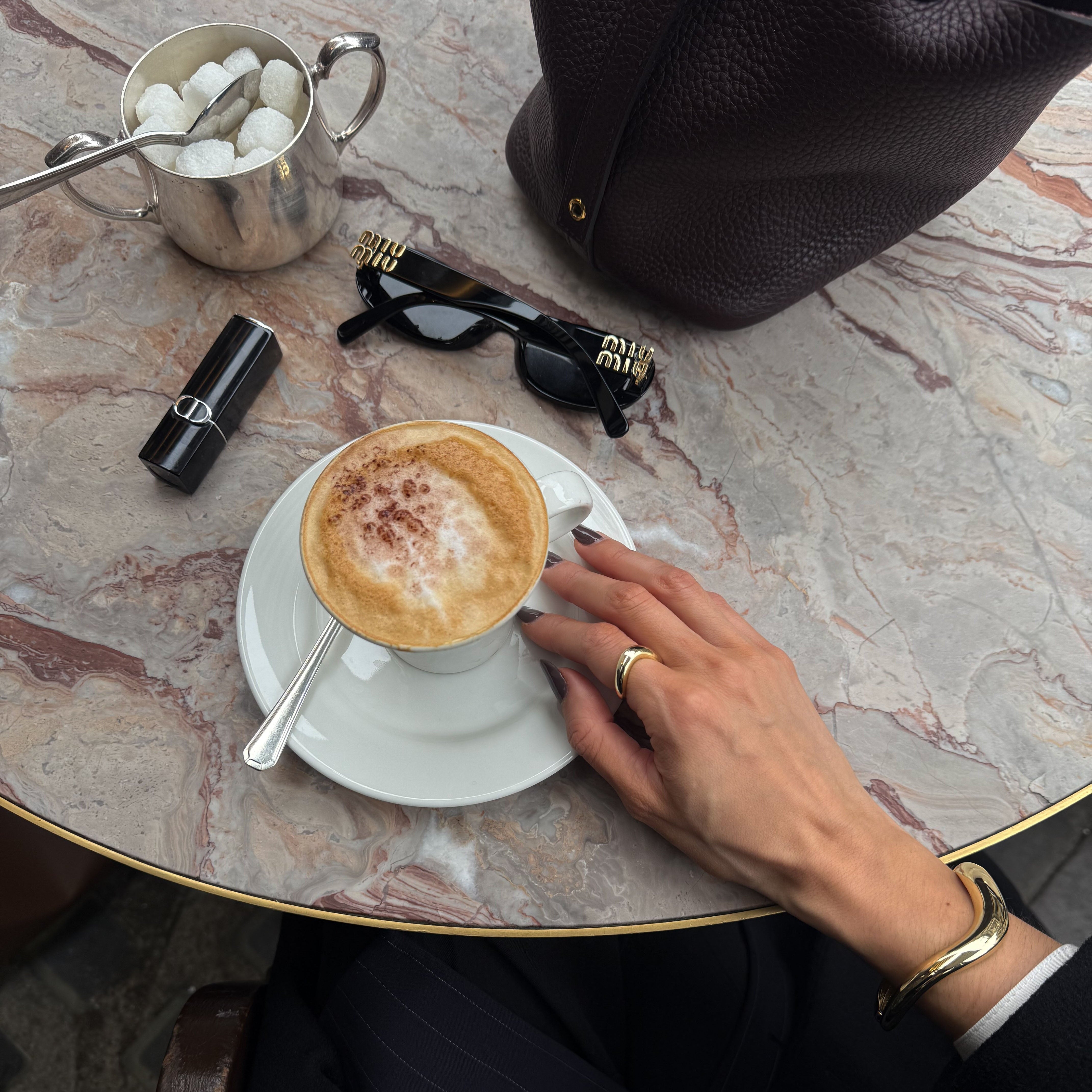 Its wavy shape catches the light and it is designed to be stacked, yet it is also perfect to wear alone.
